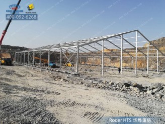 篷房制造公司可提供3-80米跨度,長度不限,高度可定制,滿足各類礦業(yè)上的空間需求,但如此大的面積在安全方面您完全可放心,華燁是引用德國的技術(shù),通過力學(xué)計算結(jié)合風(fēng)雪荷載為您設(shè)計,抗風(fēng)抗雪結(jié)構(gòu)穩(wěn)固。400-092-6268!