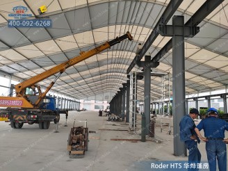 篷房制造公司華燁還可以為您提供定制化的服務,比如有傳送帶的機器,我們可以單獨在篷房頂部開口,不影響使用,一般這種場地都會需要通風,而且要在通風的同時滿足抑塵效果,我們也可以配備抑塵網,不僅美觀,還可以達到要求。