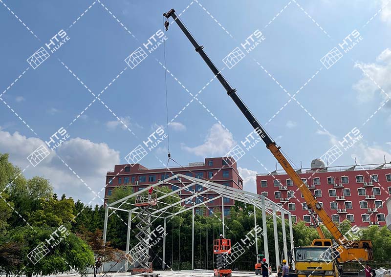 目前比較流行的臨時建筑的搭建除了鋼結構就是篷房了,篷房有各種各樣的形態,比方說人字形,弧形頂,多邊形等等,目前節奏快的時代中,應對客戶需求,華燁裝配式鋁合金篷房效率高,成本低受到關注。華燁海特斯建筑科...