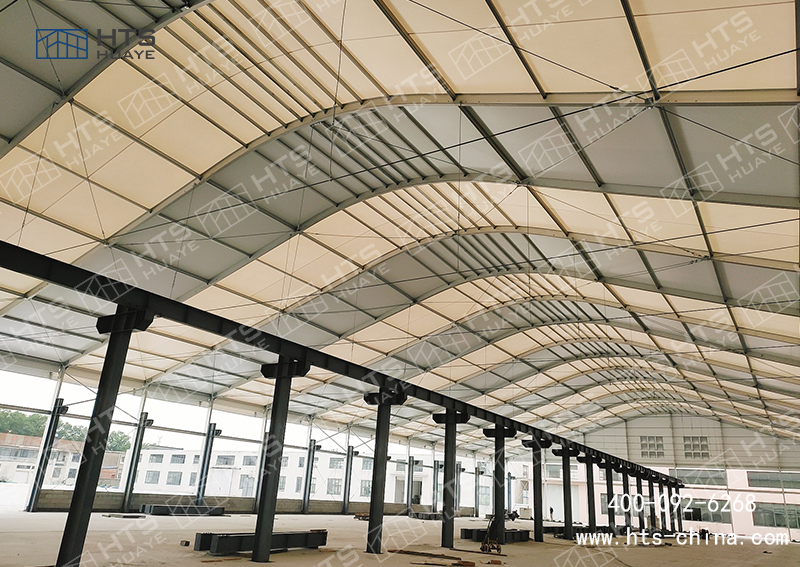 這種工業大棚框架采用鋁合金結構和PVC材質篷布搭建,整體采用模塊化搭建方式,施工不受地面限制,無需復雜地基處理,能夠節省大量的時間和費用,及時解決企業的使用需求。