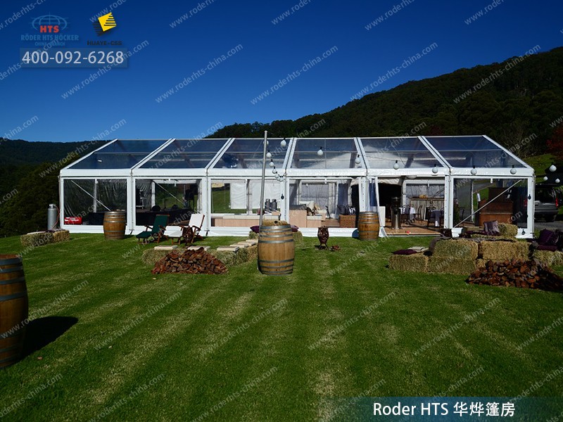 華燁篷房全透明活動篷房采用進口高透光透明膜布作為頂篷,篷布可適用于零下30度至40度室外溫度、B1級阻燃、抗紫外線強、抗拉強度高、篷布本身自潔性高。熱線:400-092-6268
