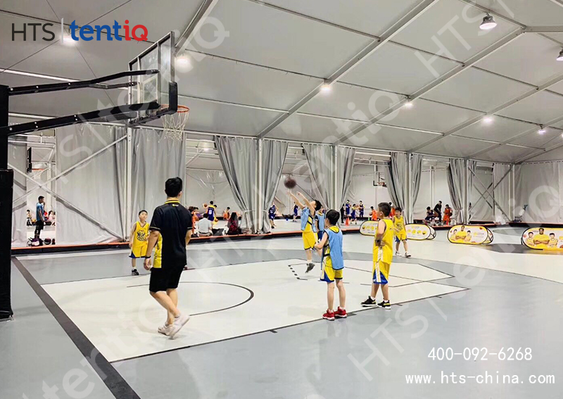 華燁戶外籃球場篷房覆蓋結構跨度3~80米、邊高2.5~12米之間的所有主流尺寸,長度可無限延伸。框架采用高強度航空鋁合金結構,安全、耐用、環保,十分適合用于建造臨時或半永久性的體育場館。