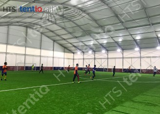足球場篷房都可以滿足,華燁篷房可提供3-80米的寬度,長度是無限延伸,高度可以達到10米,內部無立柱,可以隨心所欲發揮球技,并且內部可隨意分割使用。四周還可以采用篷布或ABS墻體,保證在冬季訓練時抗寒防凍;在夏季來臨時,可以將周邊墻體拆除,起到通風降溫的作用。