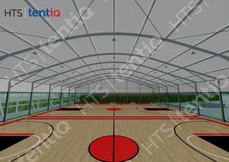 籃球場移動篷房主體跨度覆蓋20~50米之間的所有主流尺寸,長度上可進行無限延伸,邊高一般在5~8米。內部無立柱,可在內部空間分割出更衣室、儲藏室、衛生間、技術設備室等等。還可以在主場館外單獨用篷房搭建配套空間,附屬設施跨度3米起,邊高2.5米起。