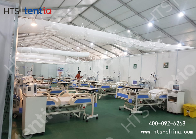 可移動裝配式篷房模塊化結構結合疫情實際需要設計安全門、智能鎖、消防、水電、通風系統、照明設備、衛浴等配套設施,在使用上與傳統的鋼結構并無不同。但在制造、搭建、拆卸過程更加方便、快捷高效。15天的生產周期,現場搭建7天即可完成10000平方的空間結構,中間無柱支撐,空間百分百利用。等疫情結束后快速遷移或拆除,無環保問題,現場廠地無損壞。