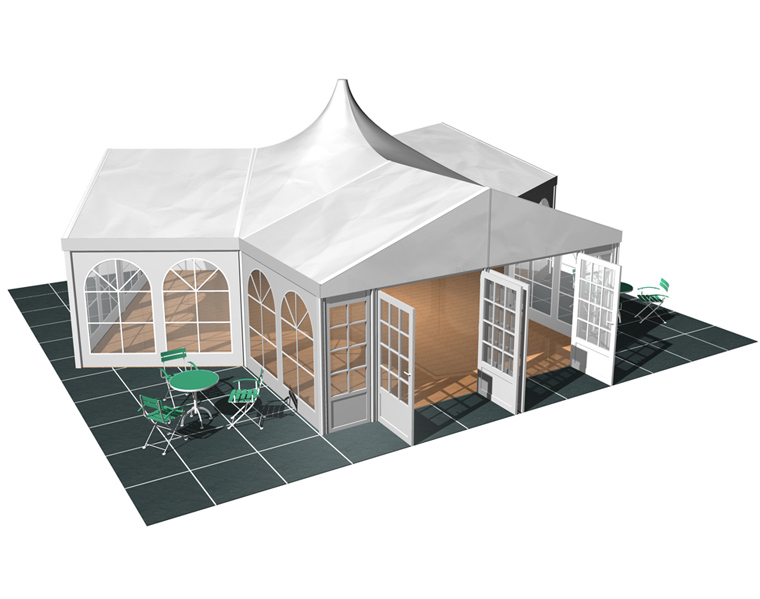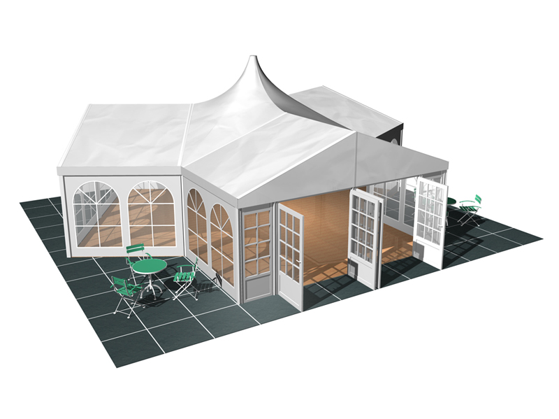 *在篷房配套上,華燁篷房廠家可提供地板、玻璃門、各種墻體。還有篷房專用空調、地毯、燈飾、承重盤、排水槽等等,也許您的需求可能與上圖所示不同,請直接聯系我們,了解此結構可用的配件。