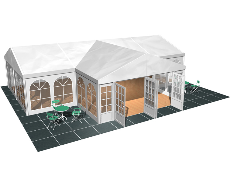*在篷房配套上,華燁篷房廠家可提供地板、玻璃門、各種墻體。還有篷房專用空調(diào)、地毯、燈飾、承重盤、排水槽等等,也許您的需求可能與上圖所示不同,請直接聯(lián)系我們,了解此結(jié)構(gòu)可用的配件。
